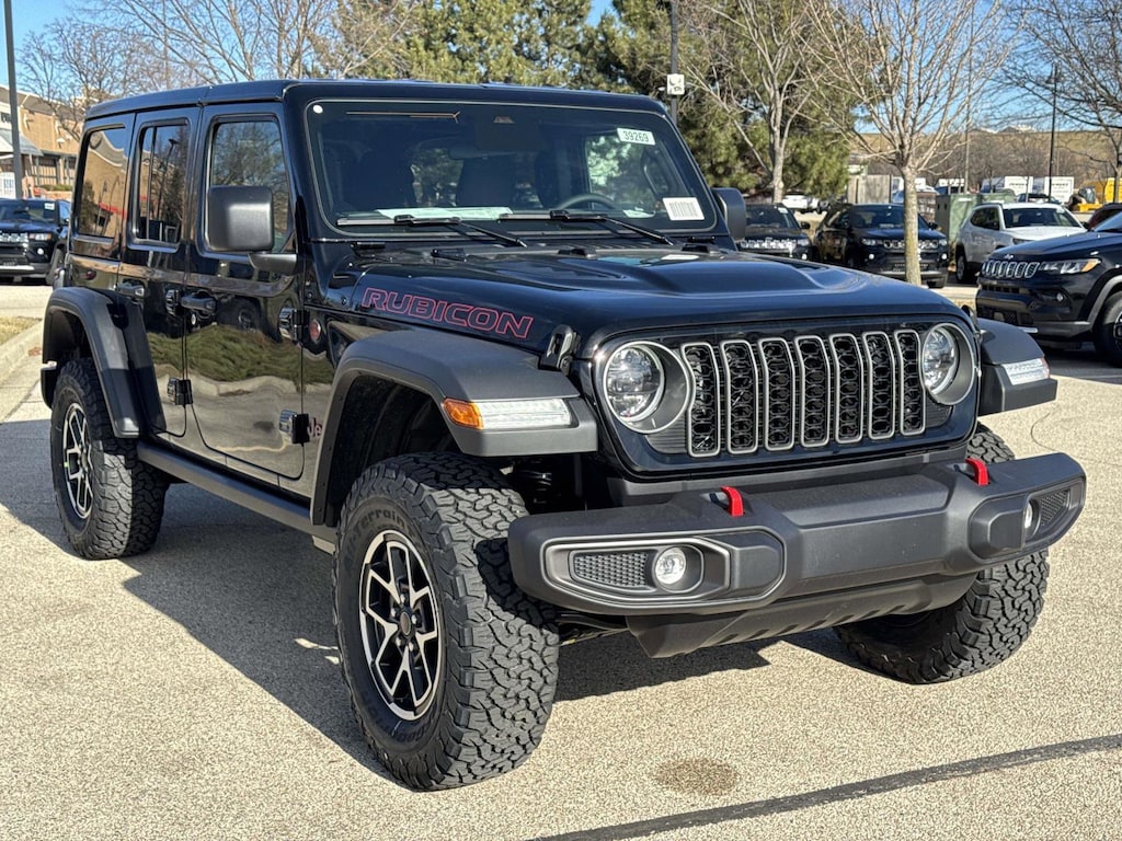 BLACK CLOTH LOW-BACK BUCKET SEATS, 4.10 REAR AXLE RATIO (STD), MYFLEXCARE SERVICE PLAN, 5 975 LBS GVWR (STD), BLACK CLEARCOAT, JEEP TRAIL RATED KIT, CONVENIENCE GROUP -inc: Heated Steering Wheel Universal Garage Door Opener Heated Front Seats, 3.6L V6 24V VVT UPG I ENGINE W/ESS -inc: Engine Oil Cooler (STD), 17" X 7.5" MACHINED/PAINTED BLACK WHEELS (STD), PERFORMANCE SUSPENSION (STD), 8-SPEED AUTOMATIC 850RE TRANSMISSION -inc: Adaptive Cruise Control w/Stop Selec-Speed Control, SAFETY GROUP -inc: ParkSense Rear Park Assist System Auto High Beam Headlamp Control Blind Spot & Cross Path Detection, MOPAR ALL-WEATHER FLOOR MATS, QUICK ORDER PACKAGE 24R RUBICON -inc: 3.6L V6 24V VVT UPG I Engine w/ESS 8-Speed Automatic 850RE Transmission, BODY COLOR 3-PIECE HARD TOP -inc: Freedom Panel Storage Bag Rear Window Defroster Rear Window Wiper/Washer, LT285/70R17C BSW OFF-ROAD TIRES (STD), FRONT LICENSE PLATE BRACKET, Four Wheel Drive, Locking/Limited Slip Differential, Locking/Limited Slip Differential, Tow Hitch, Power Steering, ABS, 4-Wheel Disc Brakes, Brake Assist, Locking/Limited Slip Differential, Brake Actuated Limited Slip Differential, Aluminum Wheels, Tires - Front All-Terrain, Tires - Rear All-Terrain, Conventional Spare Tire, Tow Hooks, Tow Hooks, Heated Mirrors, Power Mirror(s), Intermittent Wipers, Variable Speed Intermittent Wipers, Privacy Glass, Rollover Protection Bars, Convertible Soft Top, Power Door Locks, Fog Lamps, Daytime Running Lights, Automatic Headlights, LED Headlights, AM/FM Stereo, Satellite Radio, Bluetooth Connection, Requires Subscription, MP3 Capability, Steering Wheel Audio Controls, Auxiliary Audio Input, Satellite Radio, Requires Subscription, Bluetooth Connection, Driver Adjustable Lumbar, Driver Adjustable Lumbar, Pass-Through Rear Seat, Rear Bench Seat, Adjustable Steering Wheel, Trip Computer, Power Windows, Keyless Entry, Power Door Locks, Keyless Entry, Power Door Locks, Keyless Start, Cruise Control, Adaptive Cruise Control, Climate Control, Multi-Zone A/C, A/C, Cloth Seats, Bucket Seats, Driver Vanity Mirror, Passenger Vanity Mirror, Driver Illuminated Vanity Mirror, Passenger Illuminated Visor Mirror, Floor Mats, Smart Device Integration, Smart Device Integration, WiFi Hotspot, Power Windows, Power Door Locks, Trip Computer, Immobilizer, Security System, Traction Control, Stability Control, Traction Control, Front Side Air Bag, Telematics, Requires Subscription, Front Collision Mitigation, Tire Pressure Monitor, Driver Air Bag, Passenger Air Bag, Front Head Air Bag, Rear Head Air Bag, Passenger Air Bag Sensor, Child Safety Locks, Back-Up Camera