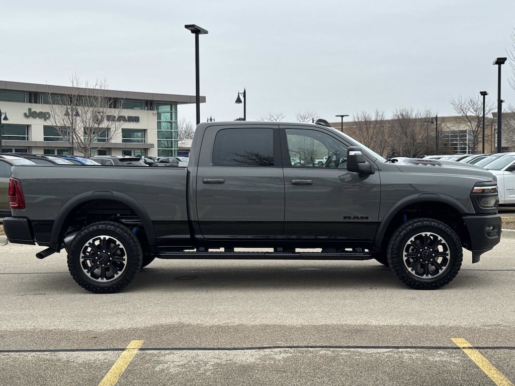 DIAMOND BLACK CRYSTAL PEARLCOAT, LOWER TWO-TONE PAINT, MYFLEXCARE SERVICE PLAN, CERAMIC GRAY CLEARCOAT, BED UTILITY GROUP -inc: MOPAR Spray In Bedliner LED Bed Lighting MOPAR Deployable Bed Step, GVWR: 10 000 LBS (STD), 3.73 AXLE RATIO (STD), ENGINE: 6.4L V8 HEMI HD (STD), SPORT PERFORMANCE HOOD, MOPAR TRAILER CAMERA WIRING W/NO CAMERA, BLACK LEATHER TRIMMED BUCKET SEATS (PL) -inc: Bucket Seats Dual Wireless Charging Pad Power 2-Way Passenger Lumbar Adjust Ventilated Front Seats 115V Auxiliary Rear Power Outlet Media Hub w/2 Charge Only USBs Heated Second Row Seats Power Adjust 8-Way Front Passenger Seat Front Seat Back Map Pockets Radio/Driver Seat/Mirrors/Pedals Memory Full Length Upgraded Floor Console, REBEL LEVEL 1 EQUIPMENT GROUP -inc: Rain Sensitive Windshield Wipers Power Adjustable Pedals w/Memory Body Color Door Handles Overhead LED Lamps Auto Dim Exterior Mirror MOPAR Rock Rails w/Step Pad Premium Overhead Console 9 Alpine Speakers w/Subwoofer Power Heated Fold Telescopic Mirrors w/Memory Sport Performance Hood Front Door Locks 2-Door Passive Entry LED Interior Lighting Auto High Beam Headlamp Control LED Dome Lamp w/On/Off Switch Universal Garage Door Opener Exterior Mirrors w/Memory MOPAR Front & Rear Rubber Floor Mats Auto Dim Exterior Passenger Mirror Sun Visors w/Illuminated Vanity Mirrors Auto Adjust In Reverse Exterior Mirrors, WHEELS: 20" X 8.0" BLACK DIAMOND CUT ALUMINUM (STD), MOPAR FRONT & REAR RUBBER FLOOR MATS, QUICK ORDER PACKAGE 2UR REBEL -inc: Engine: 6.4L V8 HEMI HD Transmission: 8-Speed Auto (8HP75-LCV), CTR STOP LAMP W/CARGO VIEW CAMERA, TRANSMISSION: 8-SPEED AUTO (8HP75-LCV) (STD), TOWING TECHNOLOGY GROUP -inc: MOPAR Trailer Camera Wiring w/No Camera Surround View Camera System Trailer Tire Pressure Monitoring System Trailer Reverse Guidance, PAINTED FLAT WHEEL-TO-WHEEL SIDE STEPS, FRONT LICENSE PLATE BRACKET, Four Wheel Drive, Locking/Limited Slip Differential, Tow Hitch, Power Steering, ABS, 4-Wheel Disc Brakes, Brake Assist, Locking/Limited Slip Differential, Aluminum Wheels, Tires - Front All-Terrain, Tires - Rear All-Terrain, Conventional Spare Tire, Tow Hooks, Integrated Turn Signal Mirrors, Power Mirror(s), Power Folding Mirrors, Heated Mirrors, Rear Defrost, Intermittent Wipers, Variable Speed Intermittent Wipers, Privacy Glass, Power Door Locks, Fog Lamps, Daytime Running Lights, Automatic Headlights, LED Headlights, AM/FM Stereo, Navigation System, Satellite Radio, Bluetooth Connection, HD Radio, Requires Subscription, MP3 Capability, Steering Wheel Audio Controls, Auxiliary Audio Input, HD Radio, Satellite Radio, Requires Subscription, Heated Front Seat(s), Cooled Front Seat(s), Heated Front Seat(s), Power Driver Seat, Adjustable Steering Wheel, Trip Computer, Power Windows, Driver Adjustable Lumbar, Pass-Through Rear Seat, Rear Bench Seat, Leather Steering Wheel, Heated Steering Wheel, Keyless Start, Keyless Entry, Power Door Locks, Cruise Control, Adaptive Cruise Control, Climate Control, Multi-Zone A/C, A/C, Heated Front Seat(s), Passenger Vanity Mirror, Passenger Illuminated Visor Mirror, Auto-Dimming Rearview Mirror, Floor Mats, Navigation System, Smart Device Integration, Smart Device Integration, Bluetooth Connection, WiFi Hotspot, Power Door Locks, Power Windows, Adjustable Pedals, Trip Computer, Immobilizer, Security System, Traction Control, Stability Control, Traction Control, Front Side Air Bag, Front Collision Mitigation, Rear Parking Aid, Blind Spot Monitor, Cross-Traffic Alert, Tire Pressure Monitor, Driver Air Bag, Passenger Air Bag, Passenger Air Bag Sensor, Front Head Air Bag, Rear Head Air Bag, Child Safety Locks, Back-Up Camera