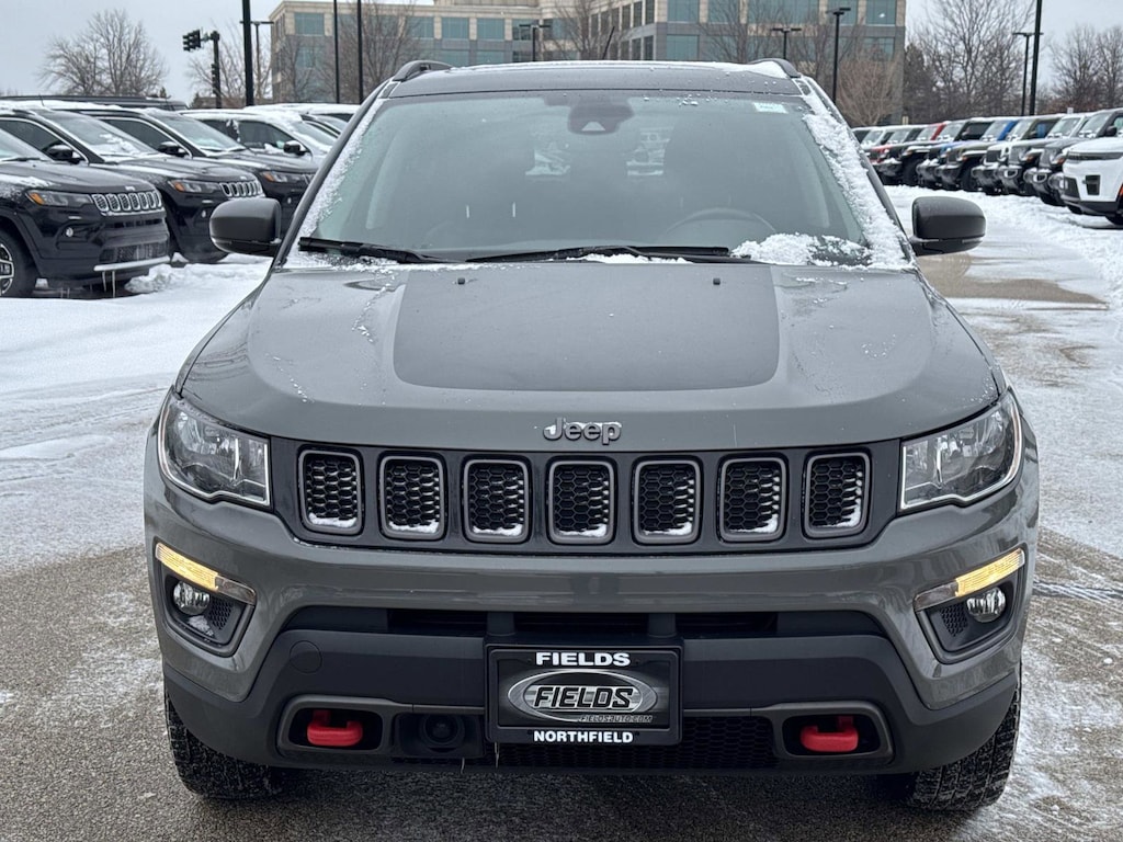 Sting-Gray Clearcoat 2021 Jeep Compass Trailhawk CARFAX One-Owner. Clean CARFAX. 2.4L I4 9-Speed 948TE Automatic 4WD 22/30 City/Highway MPG Fields Chrysler Jeep Dodge Ram and SRT of Glenview carries a wide array of used cars, as well as certified pre-owned Chrysler, Jeep and Dodge vehicles. We are a short drive up the Edens from Chicago as well as an easy drive down Golf Road from Schaumburg. Evanston, Libertyville , Mt Prospect and Arlington Heights are less than twenty minutes from our dealership in Glenview, Illinois. Speak with our Finance Department for details on purchasing an extended used car warranty. We offer all of our used car customers a full line of amenities such as complimentary car washes and service loaners! All of our used cars are safety-inspected in our Chrysler Jeep - Dodge Certified service department. Visit www.fieldscjd.com for driving directions or to inquire about current discounts and offers.